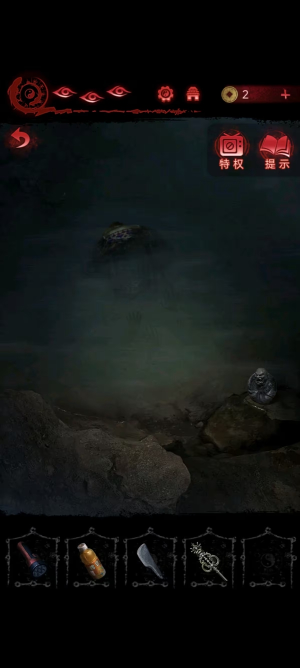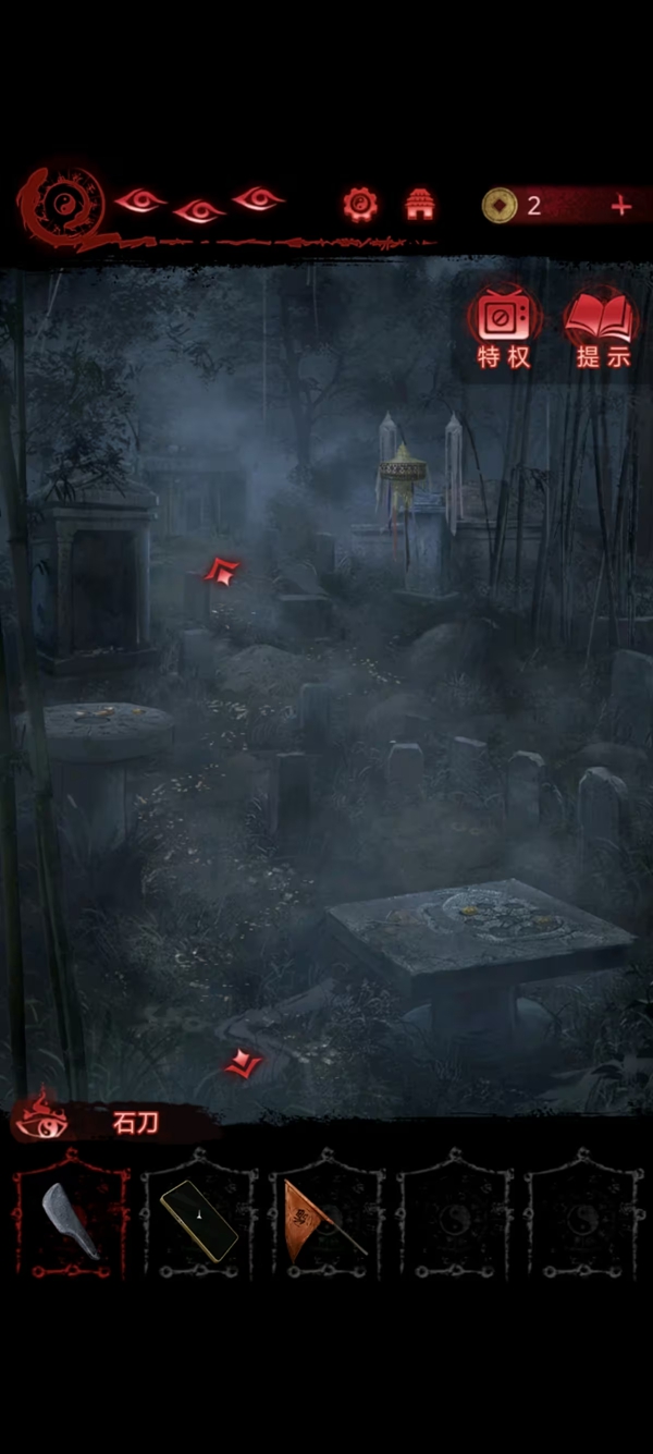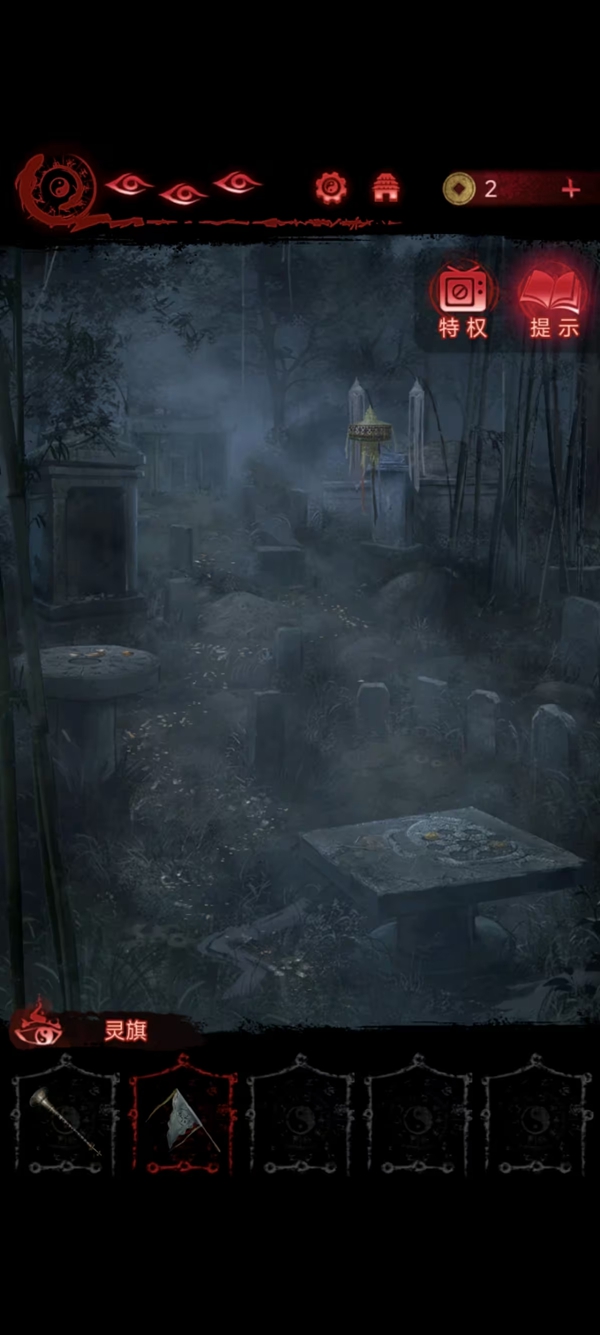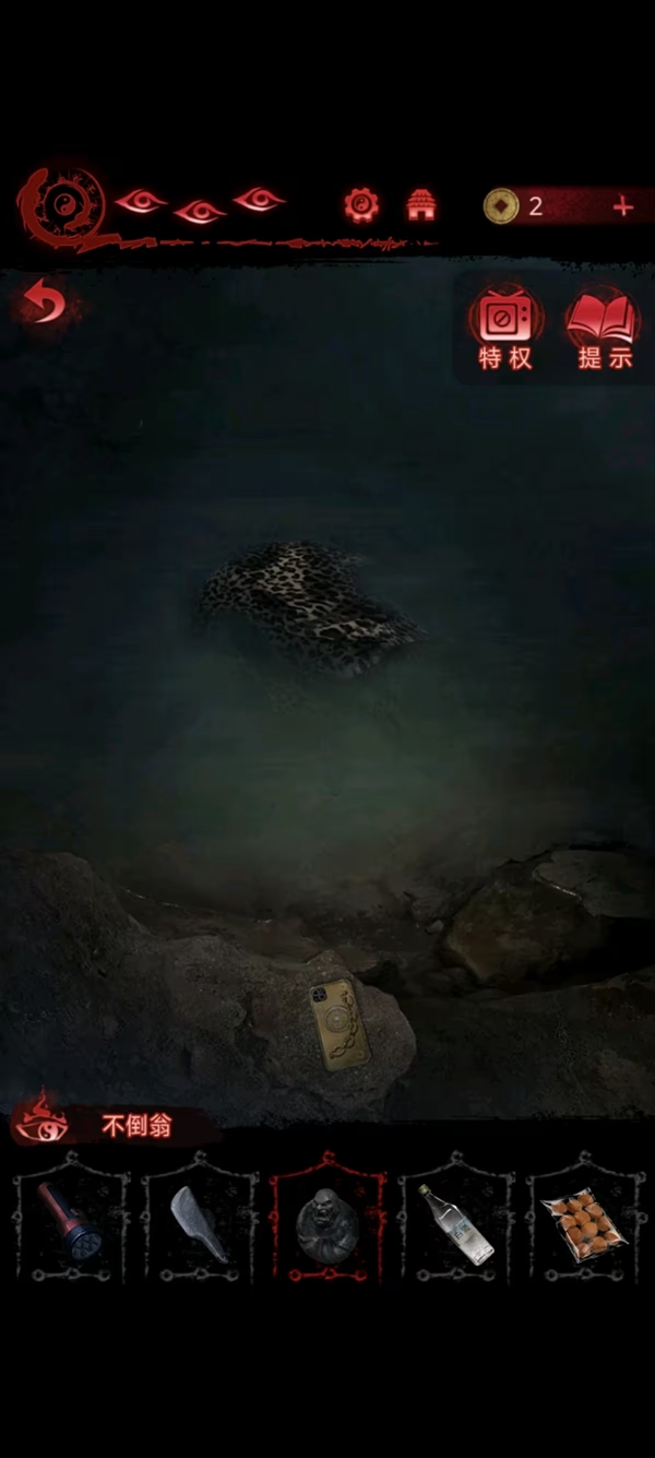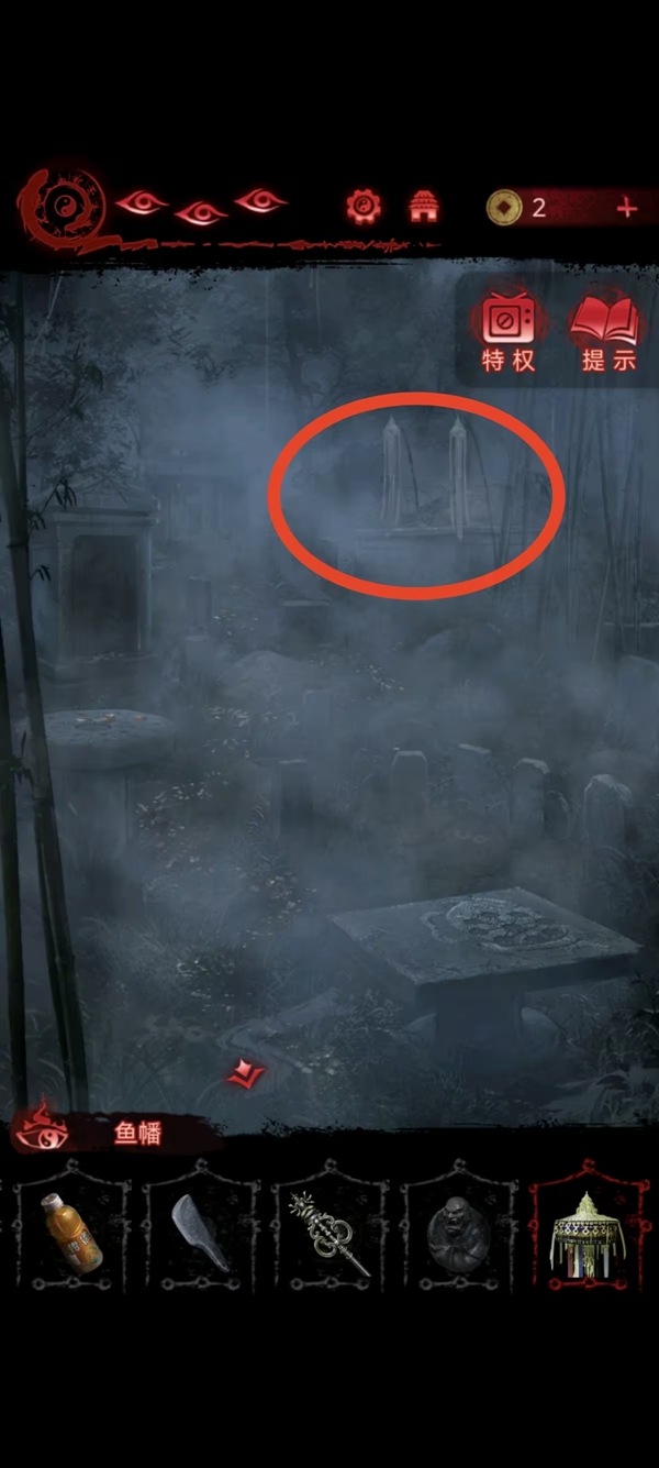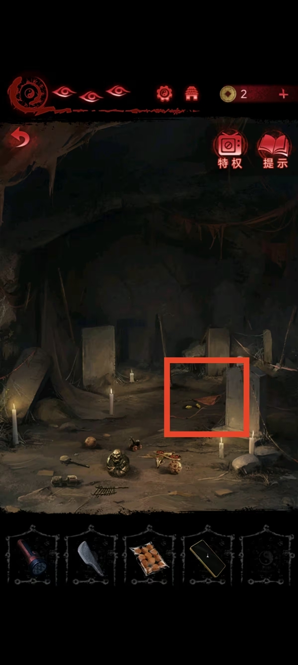 1、地上的背包获得手电和饮料后进入右边坟地,手电照墓碑获得线索。