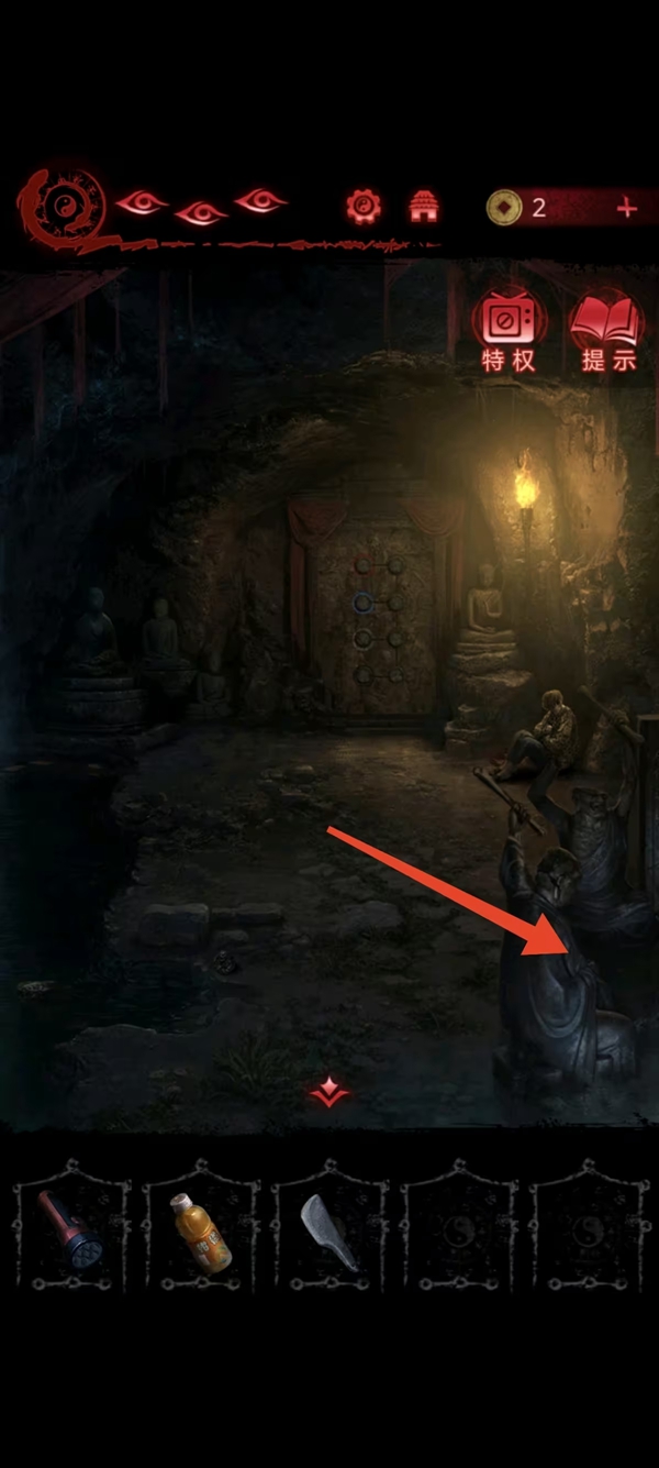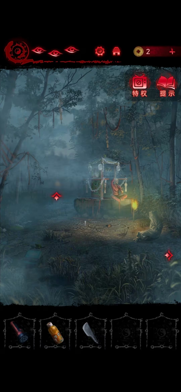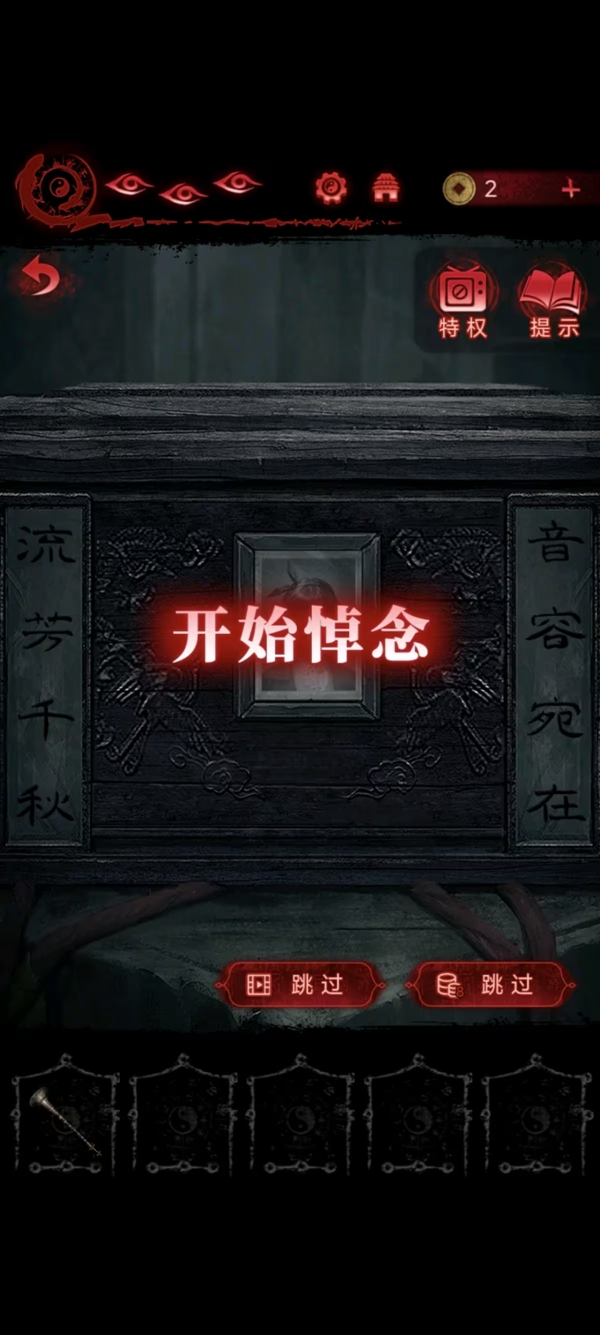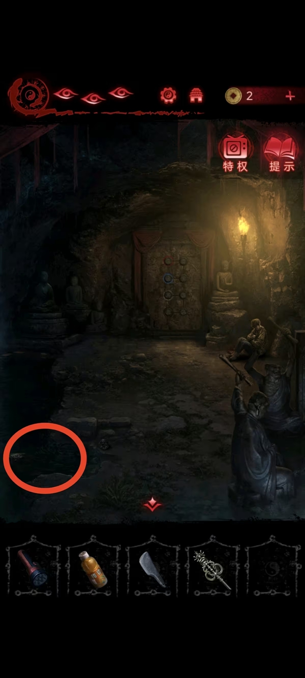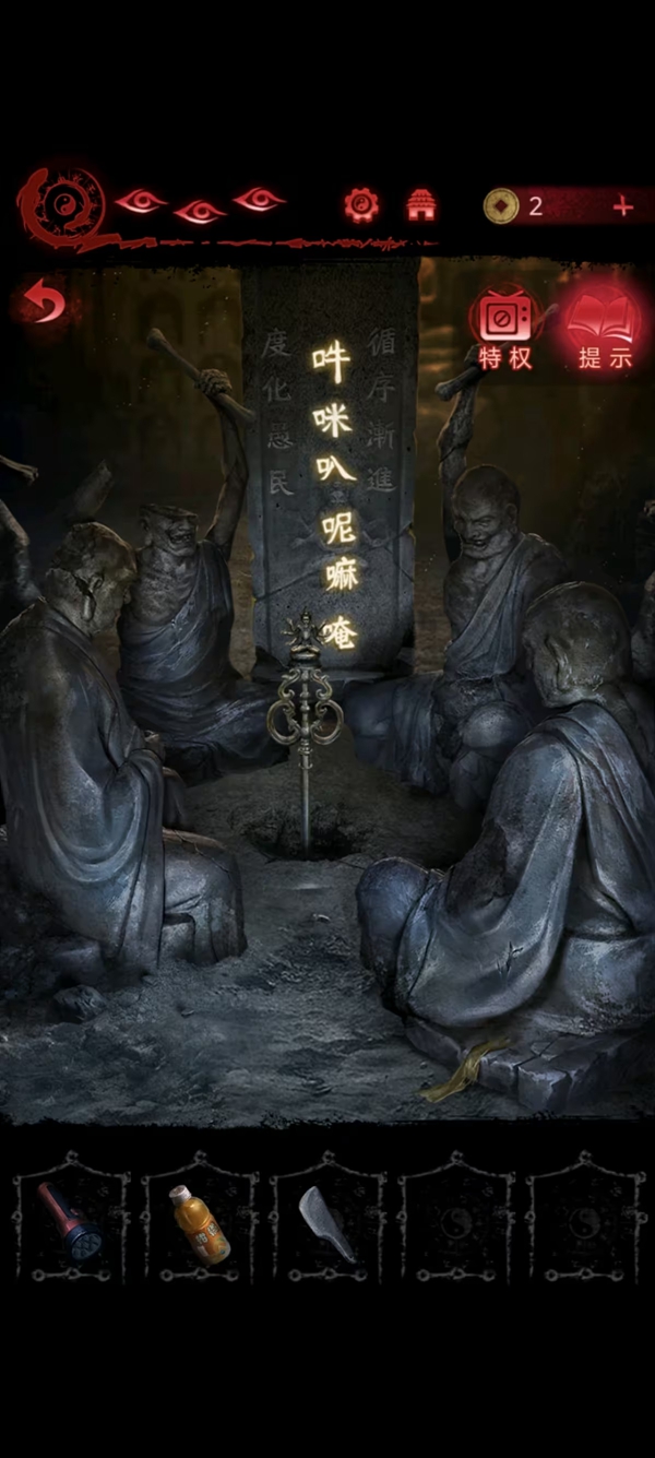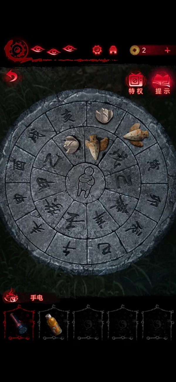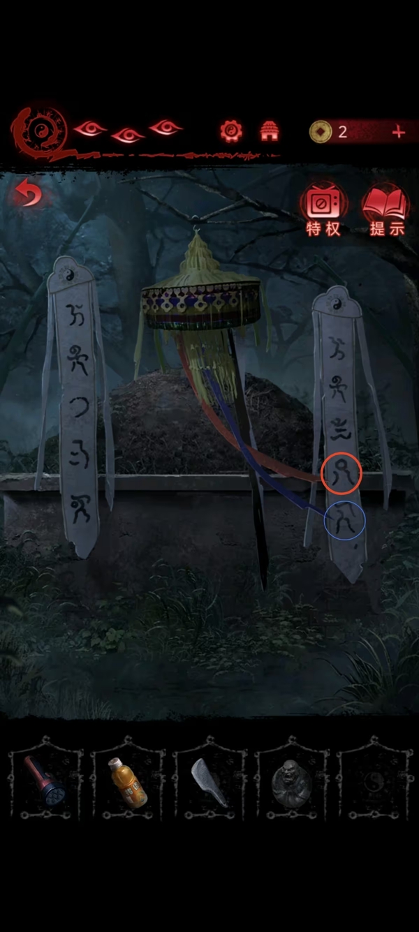 1、地上的背包获得手电和饮料后进入右边坟地,手电照墓碑获得线索。