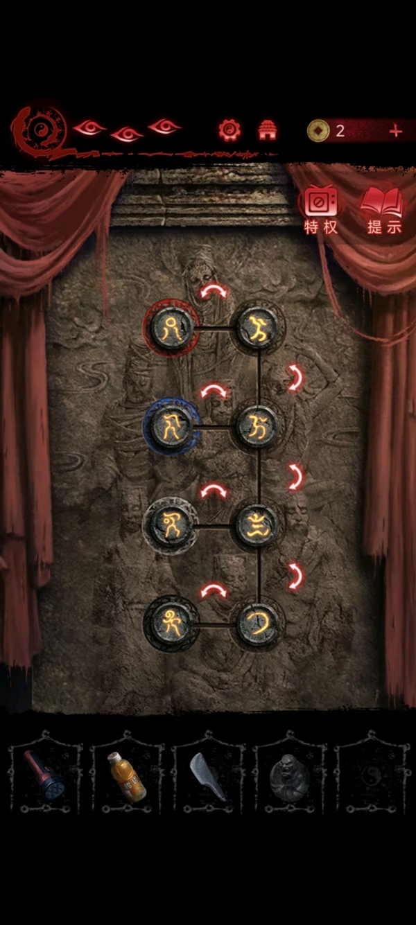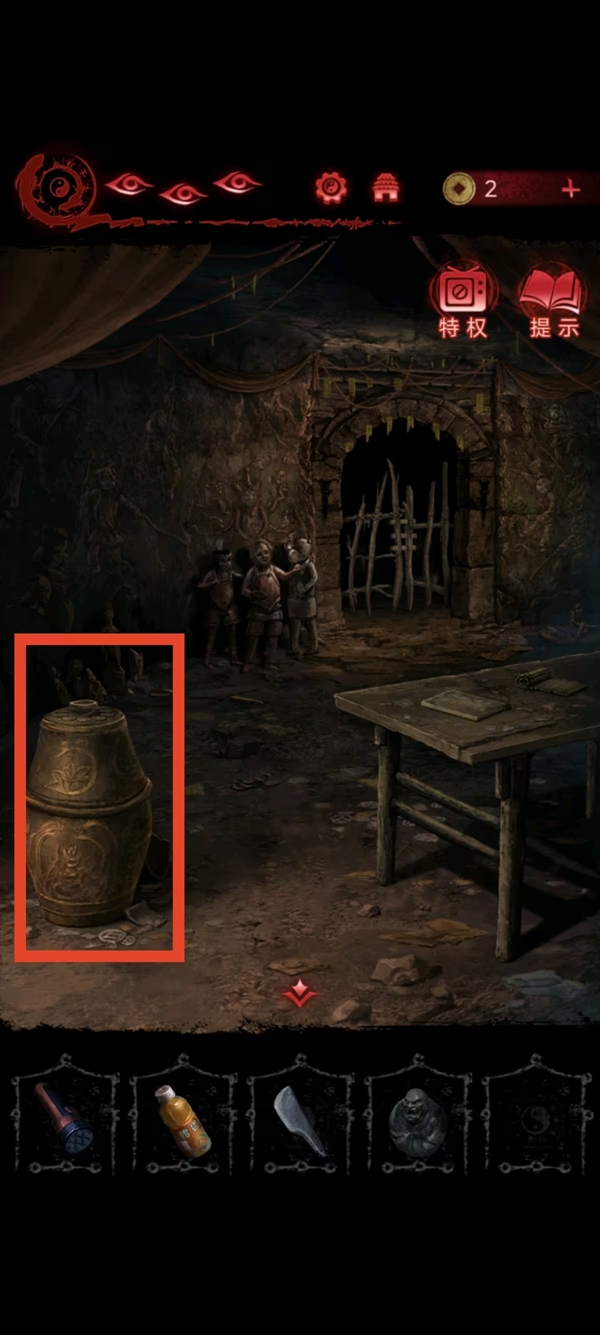 5、调整图案如图所示,进入新房间,从桌上的书和册子上获得线索,按顺序(灵塔葬阴寿)打开瓮,获得衣服,继续烧给葬老六,走之前给旁边的小孩倒一杯卡布奇诺获得拨浪鼓。
