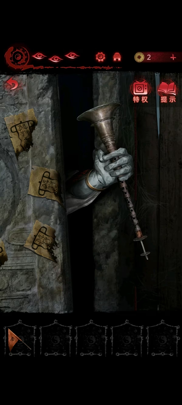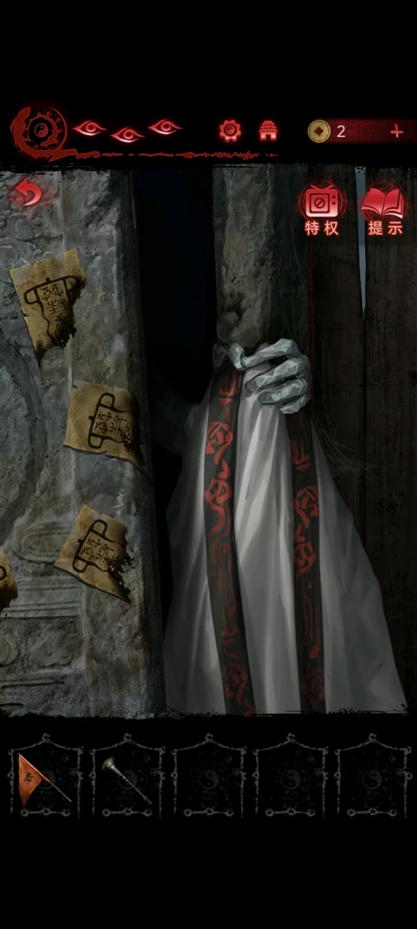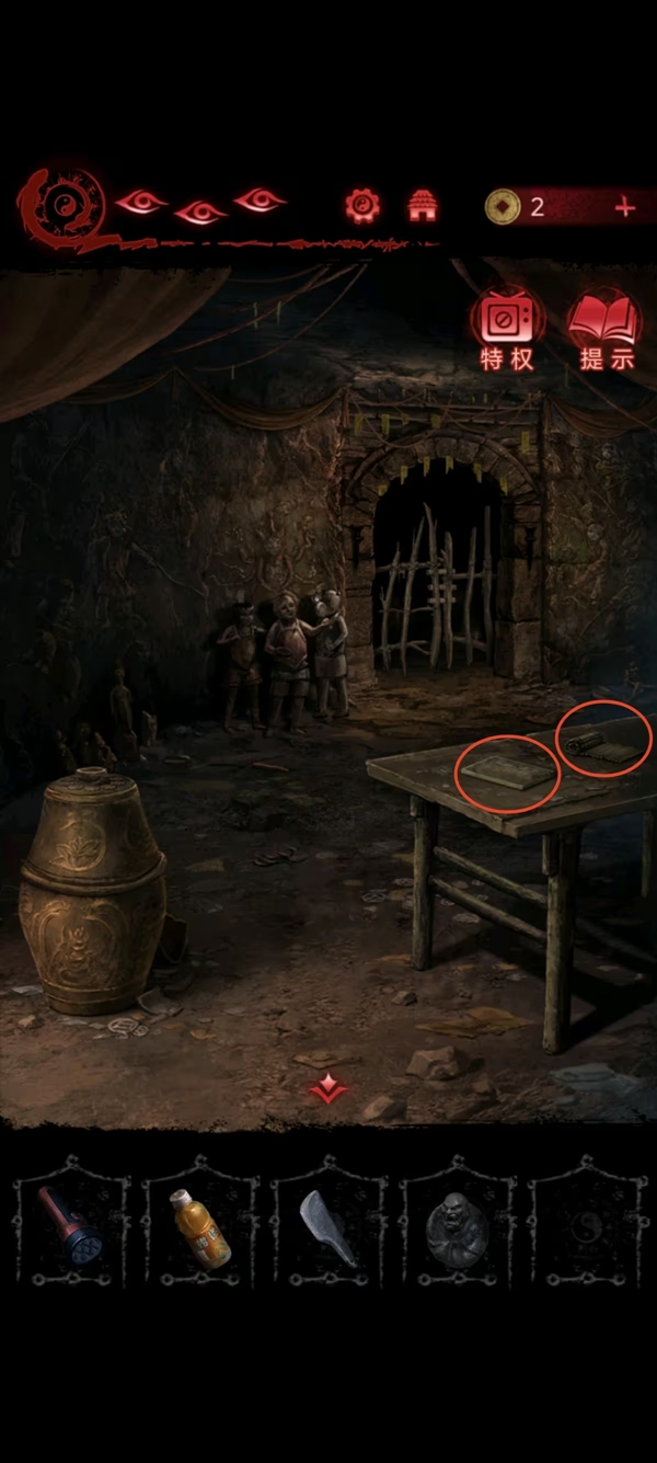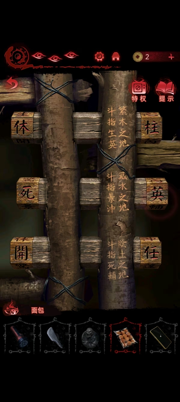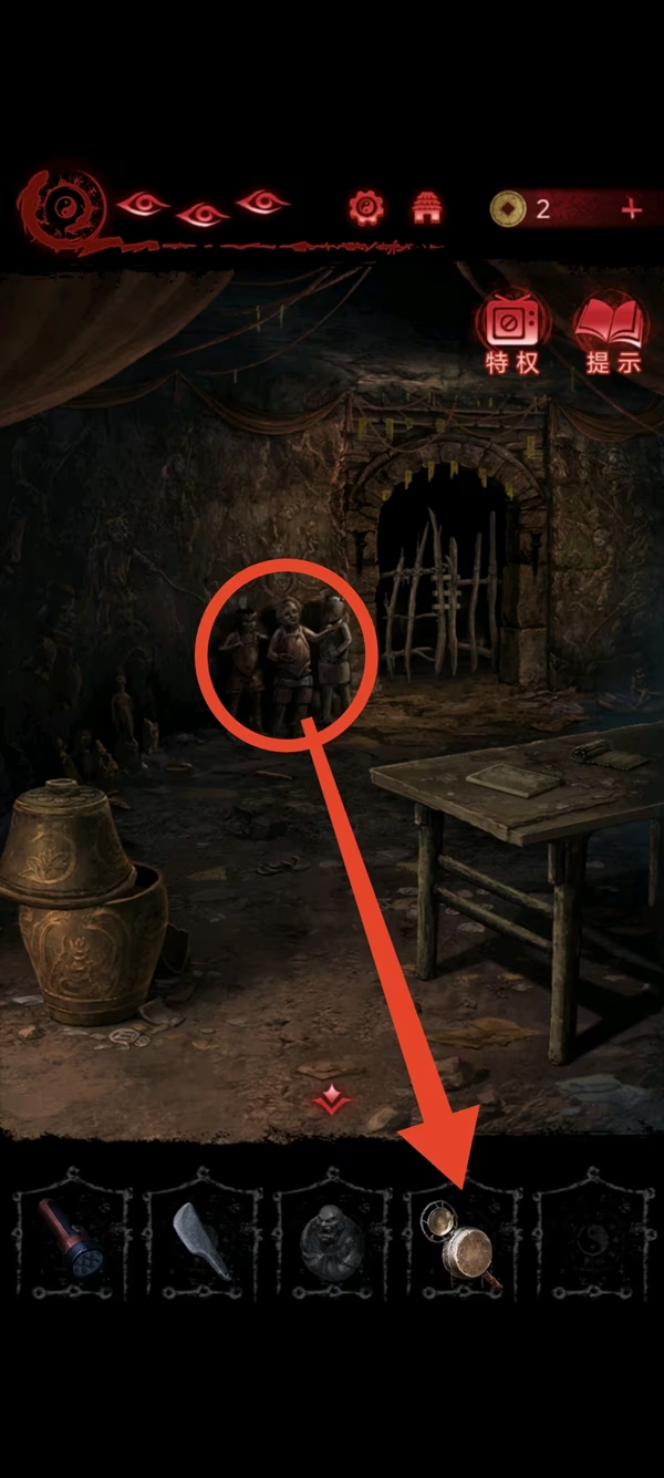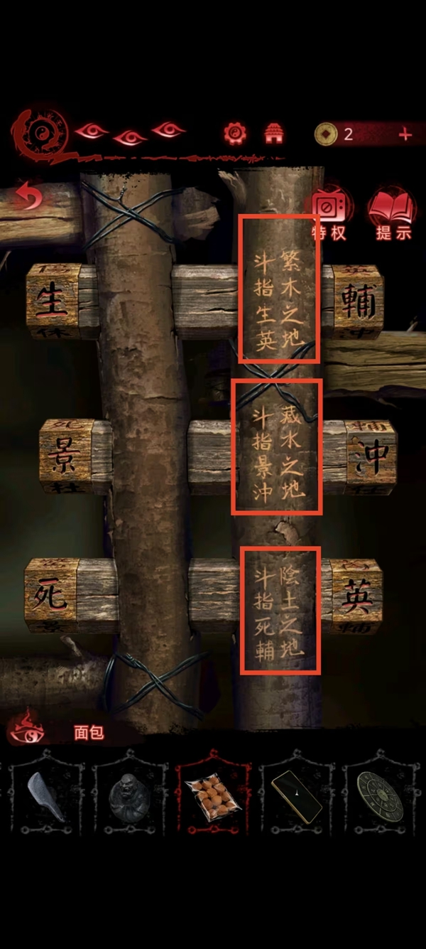 8、进房间,不倒翁放玩具中间后解除空气墙,拾取中间的旗子和元宝。去墓地,先看线索后拿出面包和元宝放桌上,元宝摆放位置如线索所示摆放后解锁地图。