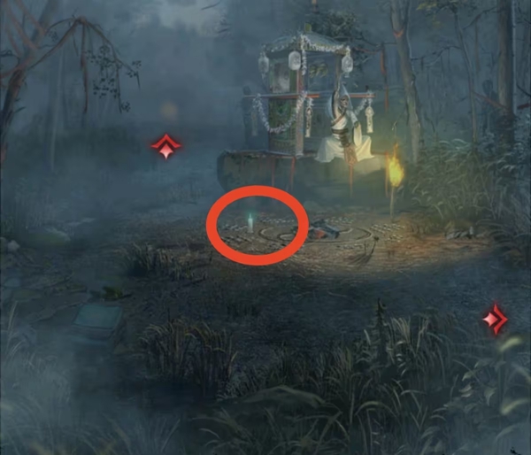 6、葬老六摇完鼓后获得老铁的手机,还回去,获得酒和面包。水旁捡到老铁的手机,去图片的地方打开,手机图片换了(后面有用),出现一个墓碑,把酒拿出来请主人喝一口后获得罗盘。
