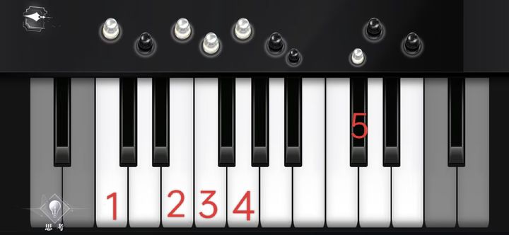 2.纯白宫殿——正常收集线索并思考联想,最后弹琴时只弹奏白色棋子对应的琴键(如图二),并在思考中联想出门后密语即可成功.