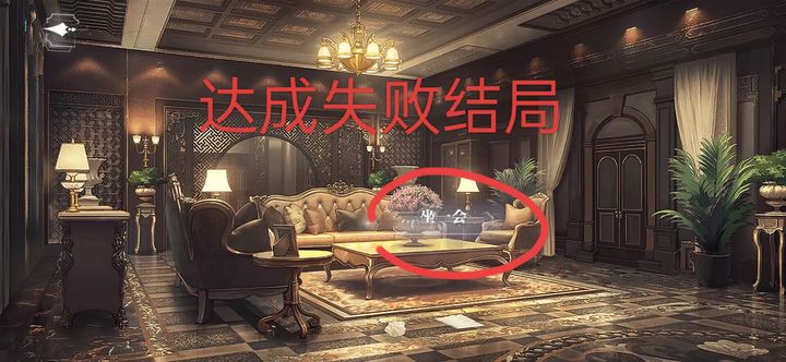 4.山间公馆——第三个房间收集线索时不要在沙发上坐一会(即图三),会失败;除此之外正常收集线索开门离开即可成功.