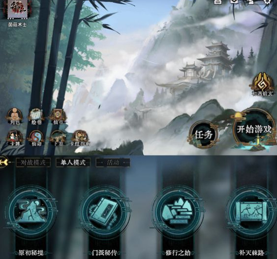 步骤3:在单人模式界面下,点击第三个“修行之初”按钮;