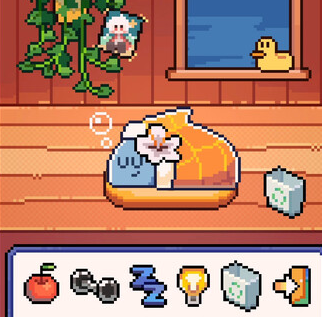 在不停地睡觉过后,睡觉的图标会变得可以移动。放置好垃圾桶,把这个图标拖进垃圾桶即可