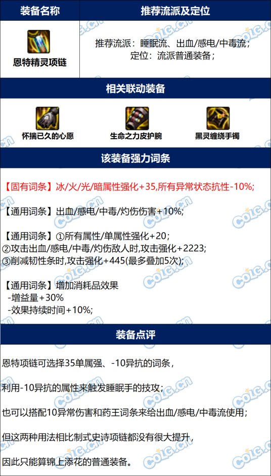 dnf恩特精灵项链完美词条、适用流派、搭配装备等要素可以参考上图。