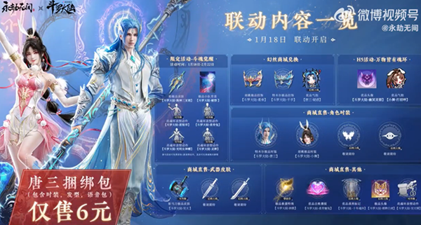 永劫无间斗罗大陆唐三联动皮肤可以直接在活动期间购买获得,唐三捆绑包为6元,喜欢的玩家可以直接购买。