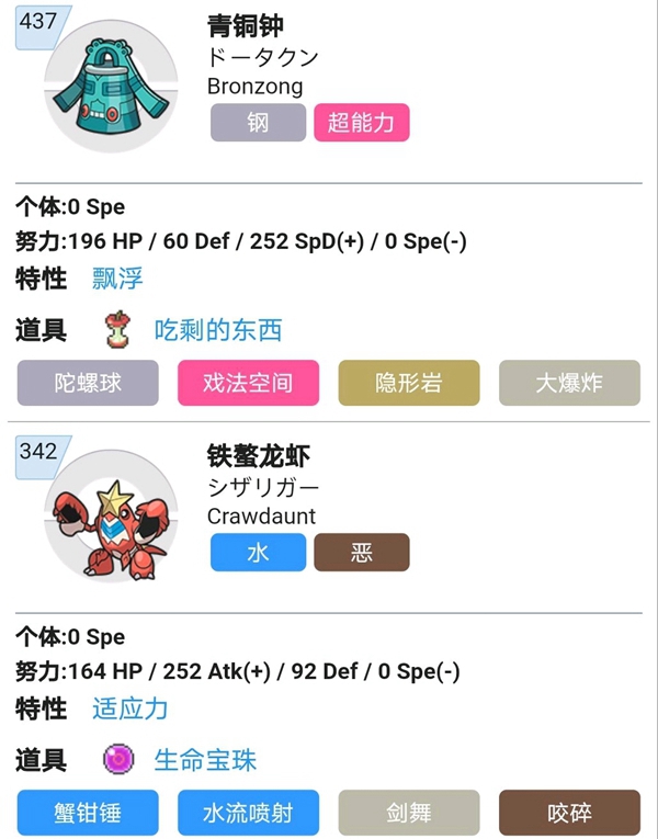 地龙—你们对战中最常见的家伙,为队伍提供电免,速度也是龙族最高。道具可以选择:生命宝珠/气势披带/龙宝。地钉也可以换岩钉,这样子青铜钟多了个技能位,带什么技能你们自己考虑。