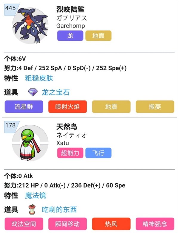 天然鸟—反弹不反弹反弹,队伍地免+四倍抗斗&让对手不能无脑的使用变化技能,但是遇到梦特地鼠&瓦斯还是没办法。努力拉一点速度快过固执斗笠菇,热风打钢系很好用。道具也可以带气势披带首发和布莉姆恩一样首发开空间,但是退场手段不太行没有薄雾炸裂,开局遇到对手有替身很难办。