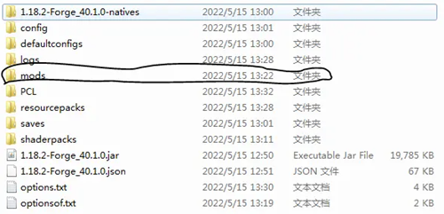 3、启动完毕之后把它先关掉,打开版本文件夹,然后把"OptiFine1.18.2 HD U H7 MODjar"给拖动到一个名字叫"mods"的文件夹中。