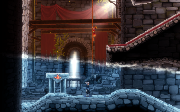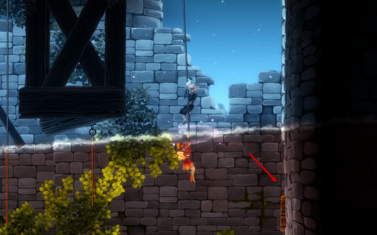 进入城堡后向右走,在第一个存档处沿着绳子往上爬