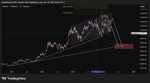 具体而言,他揭示了比特币未来三个月的潜在走势,预计年底前将反弹至至少11.5万-11.6万美元。该加密货币专家补充称,若BTC能突破该价位,则可能进一步冲击13.5万至14万美元,这将标志着这一旗舰加密货币创下历史新高(ATHs)。