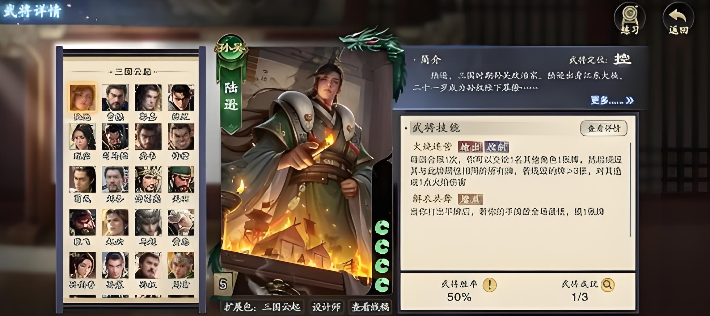 4、陆逊在荆州城表现出色,可任城主或联军,火烧连营弃同花色牌触发持续伤害,手牌数全场最低时额外摸牌,生存与输出兼顾。