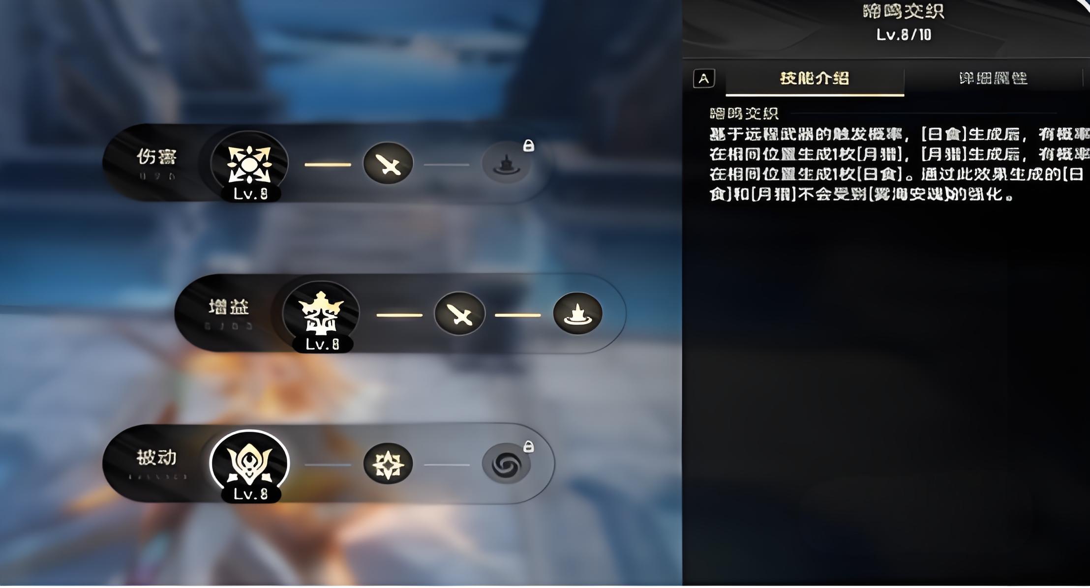 3、被动啼鸣交织基于远程武器触发概率,连续生成月猎与日食形态,虽生成技能不受雾海安魂强化,但仍能为战斗提供持续输出与形态切换空间。