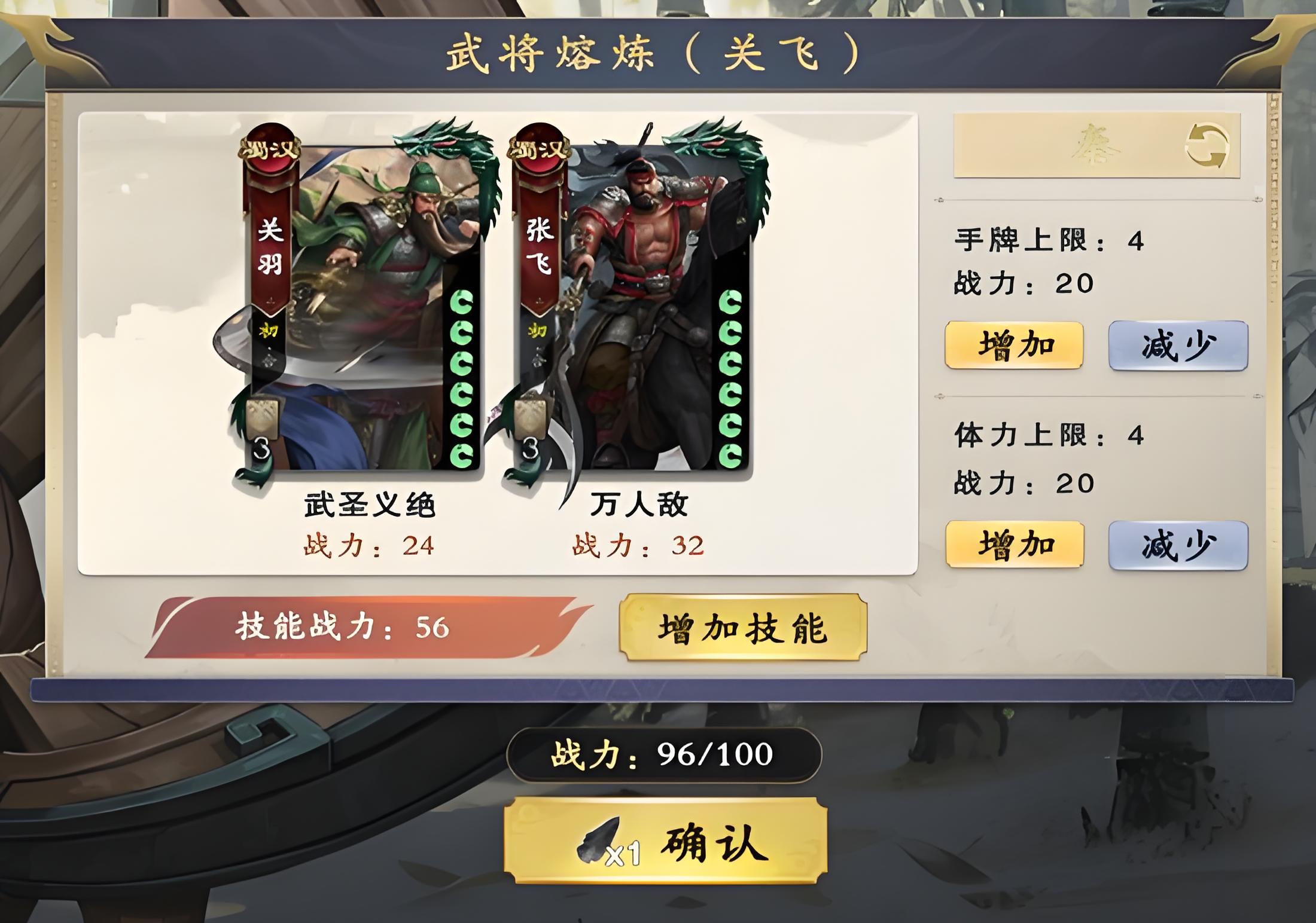 2、战力设置严格限制总战力值不超过100点,技能选取手牌上限调整体力上限提升均会占用战力需合理分配。