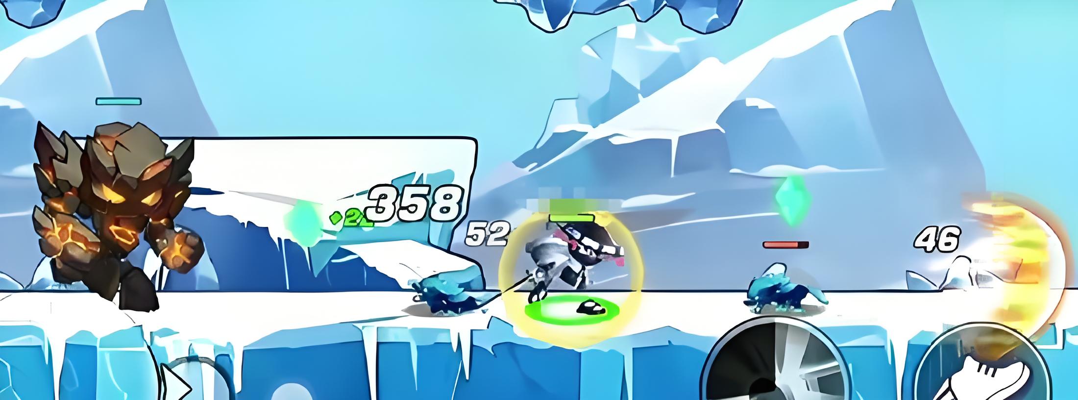 3、应对冰霜熔岩巨人需用高机动性角色走位拉扯,避开障碍区域,以控制技能打断其大范围投篮配合反弹球连招压制。