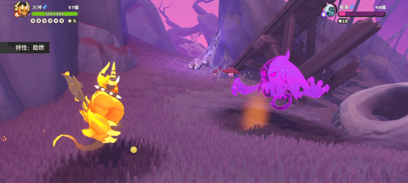 2、外观呈独特紫色与普通精灵形成区分,部分个体还会伴随环境特效,战斗中辨识度高不易混淆。