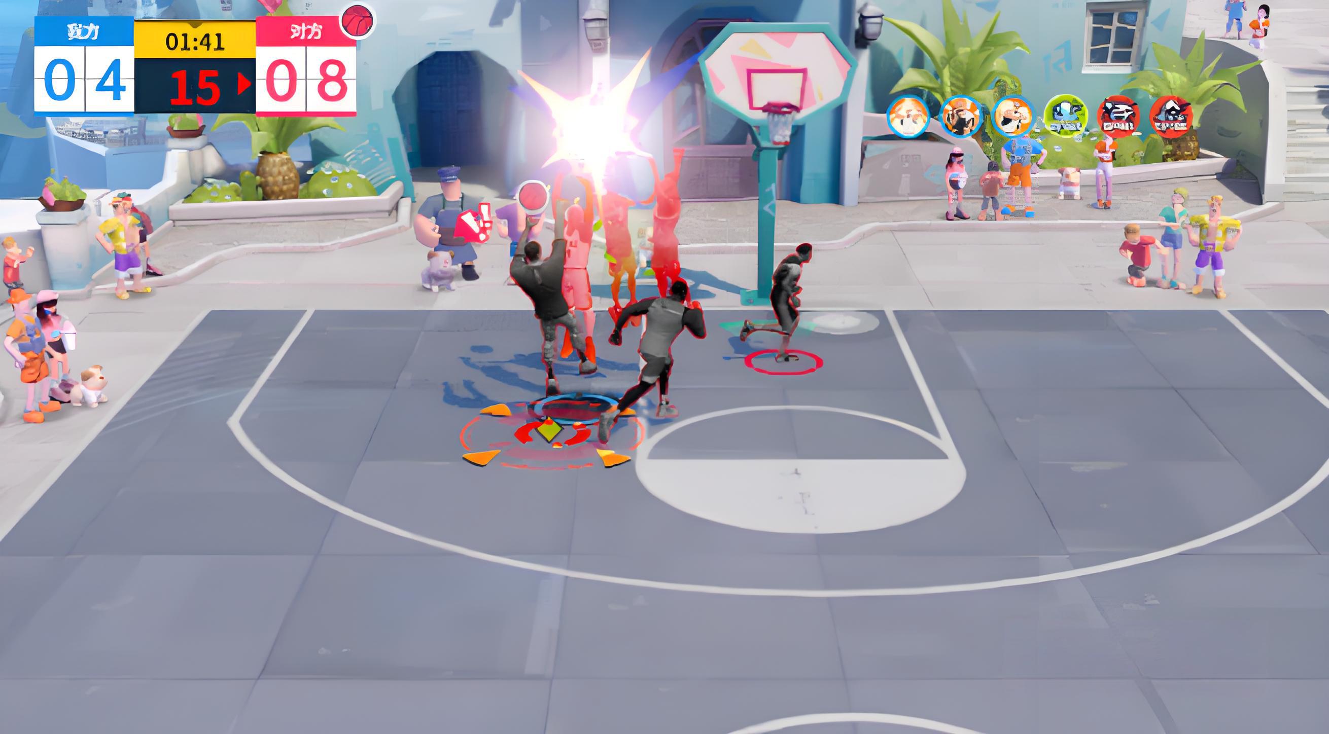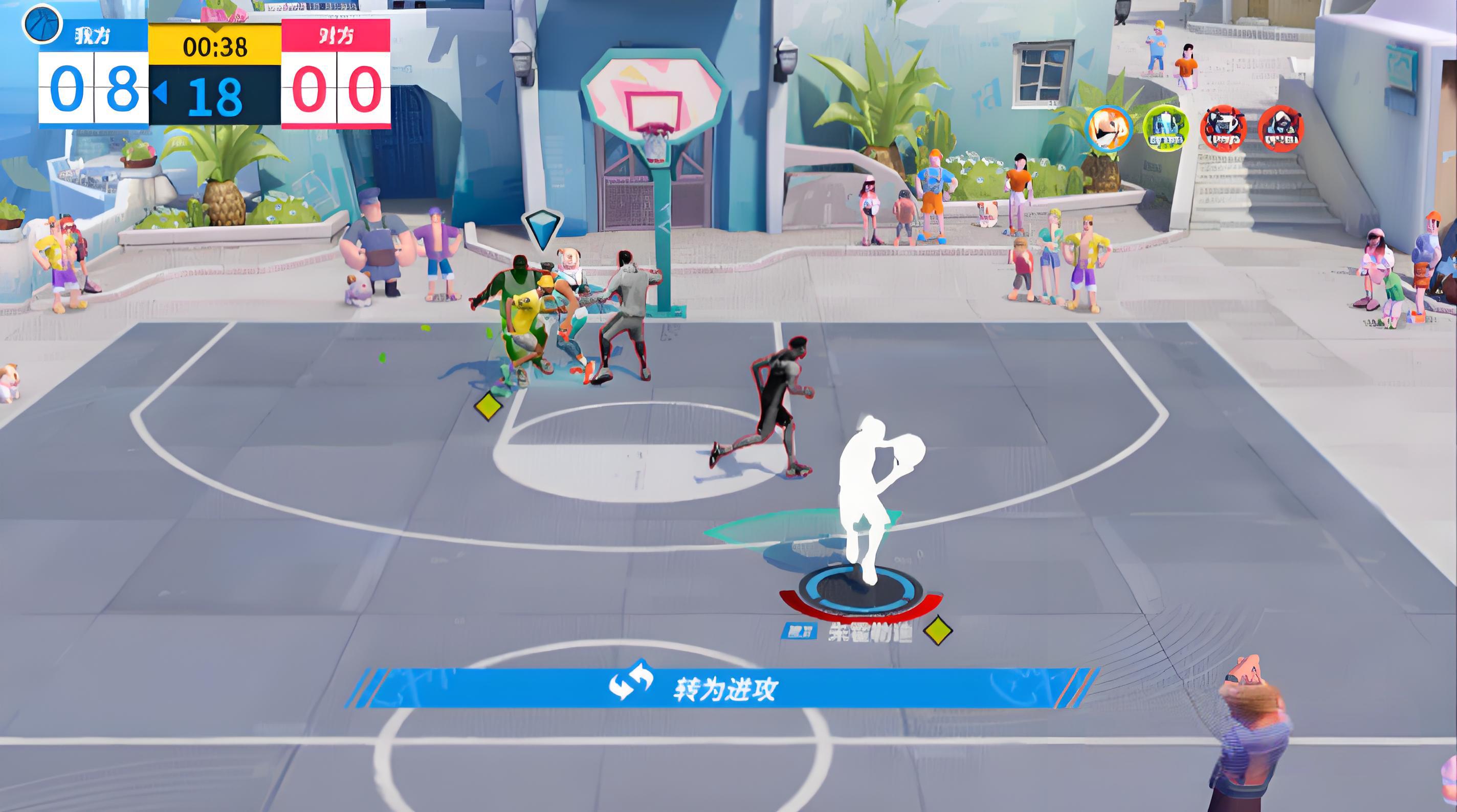 4、团队增益效果显著,进攻大旗让队友不同区域投篮获对应增益,中距离提升中投命中率,外线易中三分,还能重置突破和终结技冷却加速攻势。