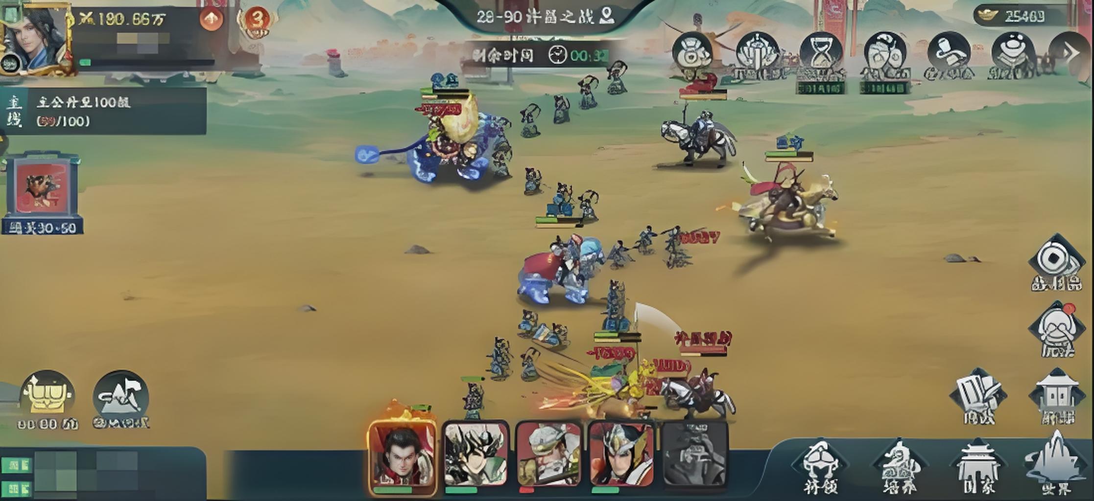 3、实战能力超越数值,低战力可压制高战力对手,技能形成稳定伤害链削减敌方整体兵力。