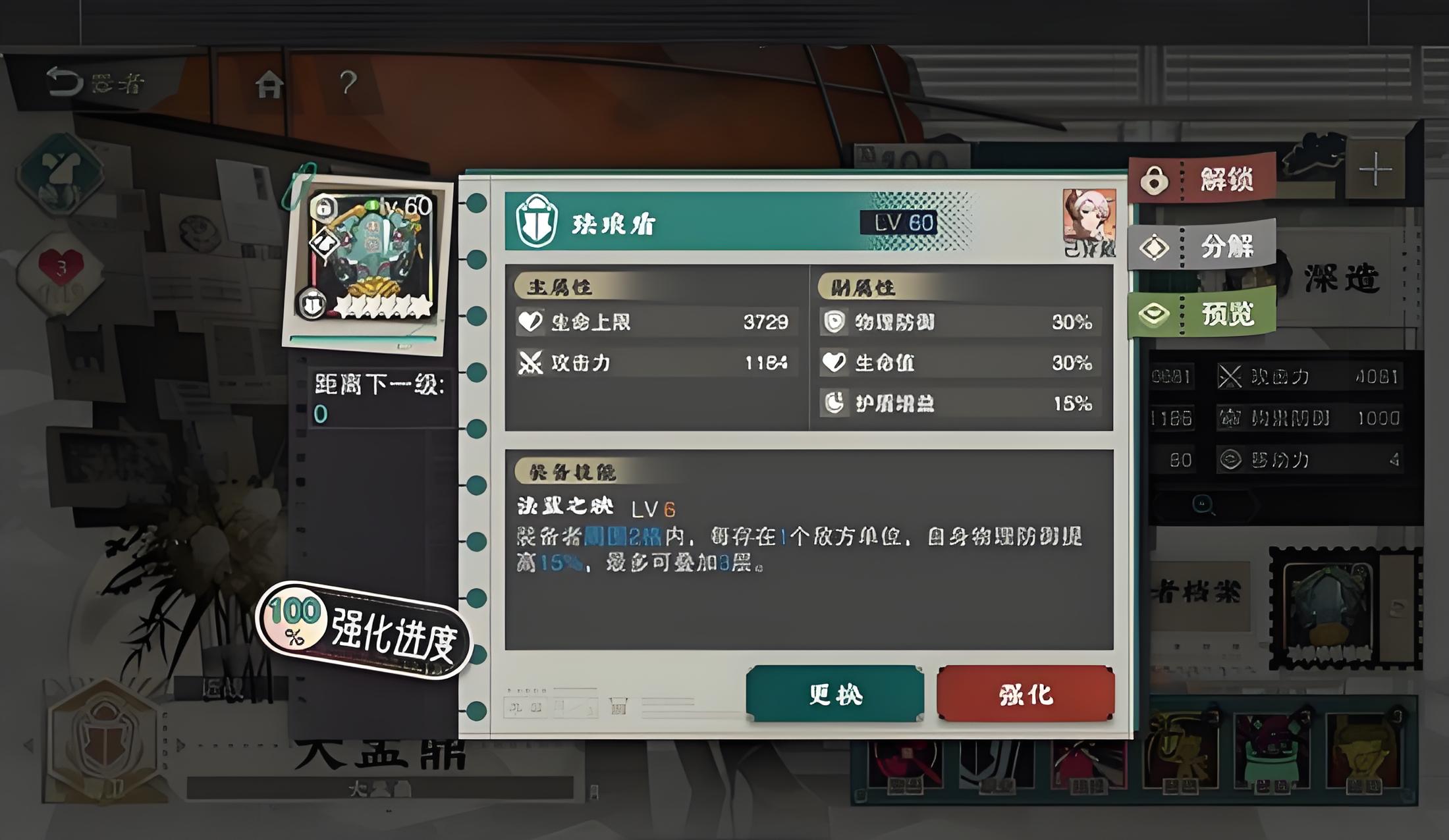 5、推荐装备珐琅盾主堆防御,装备技能可按敌方数量提升物理防御,词条优先级为大小生命双防受治疗提升护盾增益。