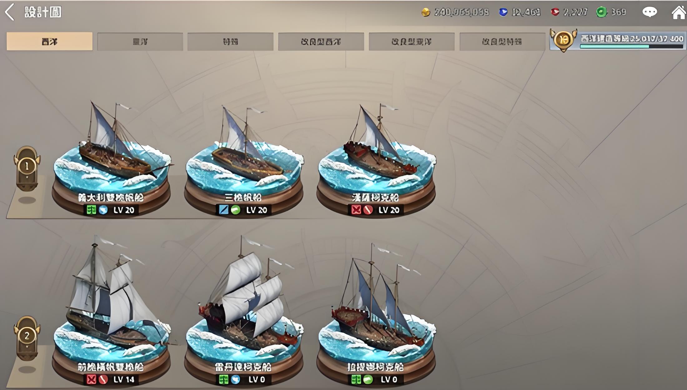 2、船只设计图图鉴分为西洋船与东洋船两大体系,西洋船多通过提升造船所等级或完成科技研发,满足条件后自动解锁对应设计图。