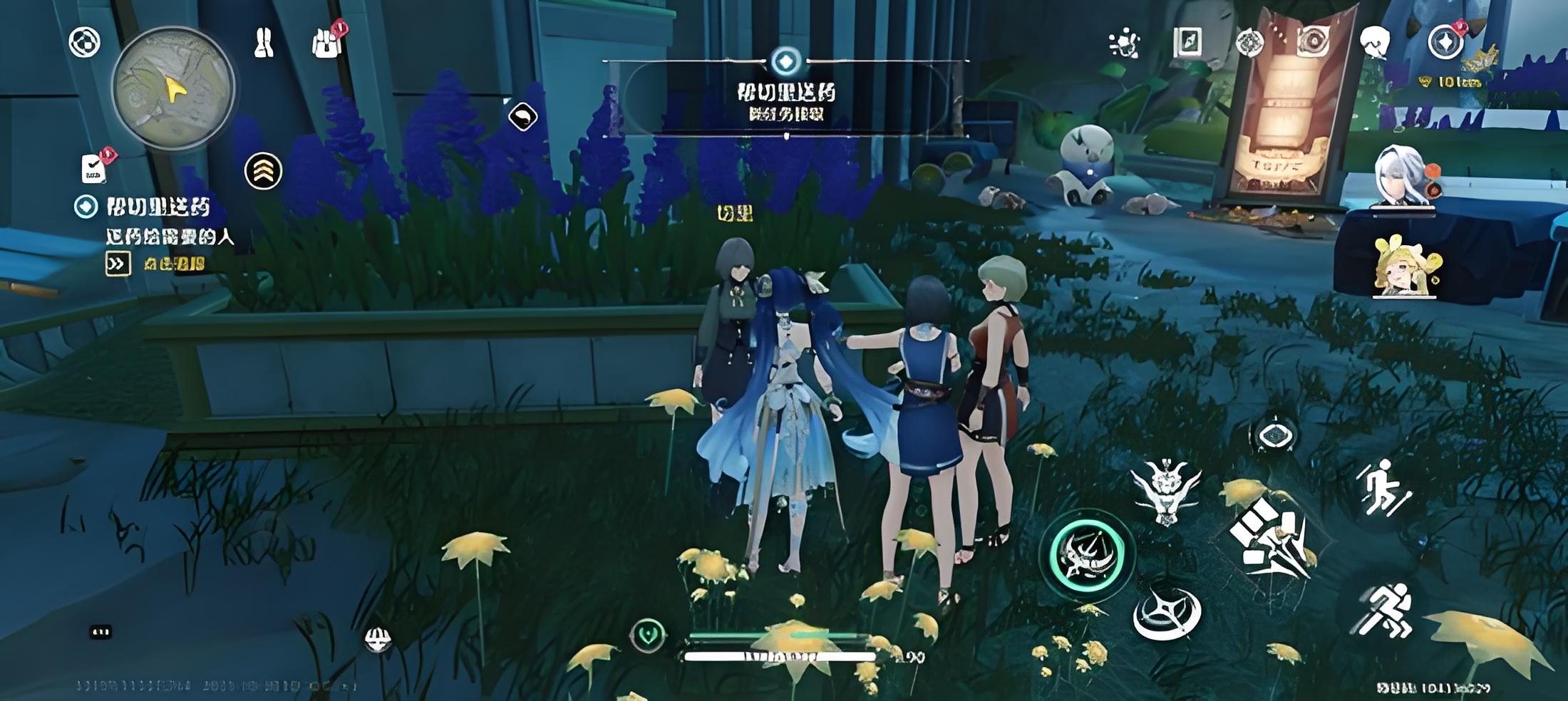 3、行进中可发现站立于石阶旁的切里NPC,其外观特征明显易于辨认,与其对话后将自动接取送药任务,目标是交付药品给多莉亚。