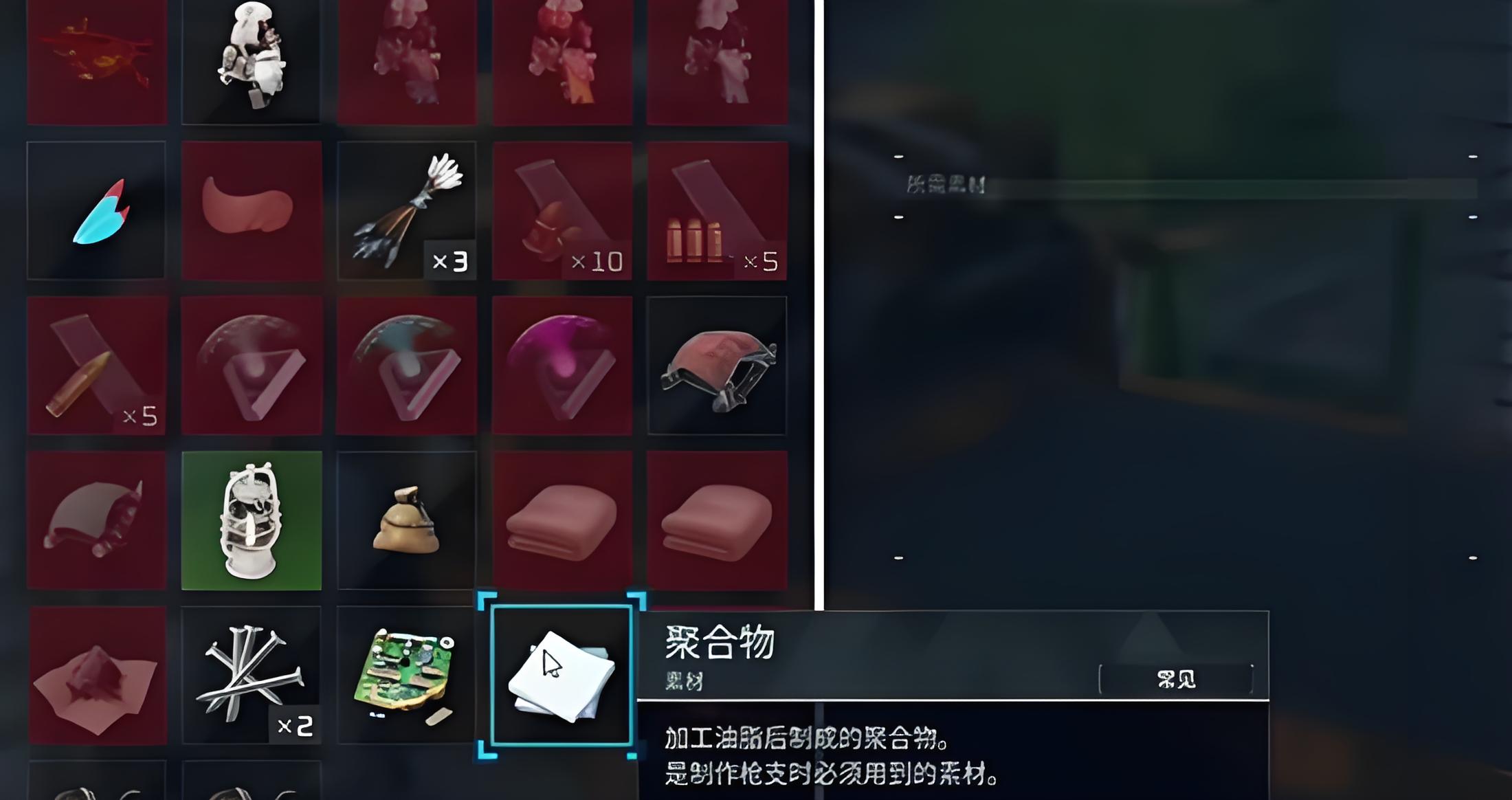 2、野外拆解可应急获取,破坏遗迹或废弃设施周围的建筑物,有概率掉落聚合物,需前往铁匠NPC处进一步加工为结晶聚合物。