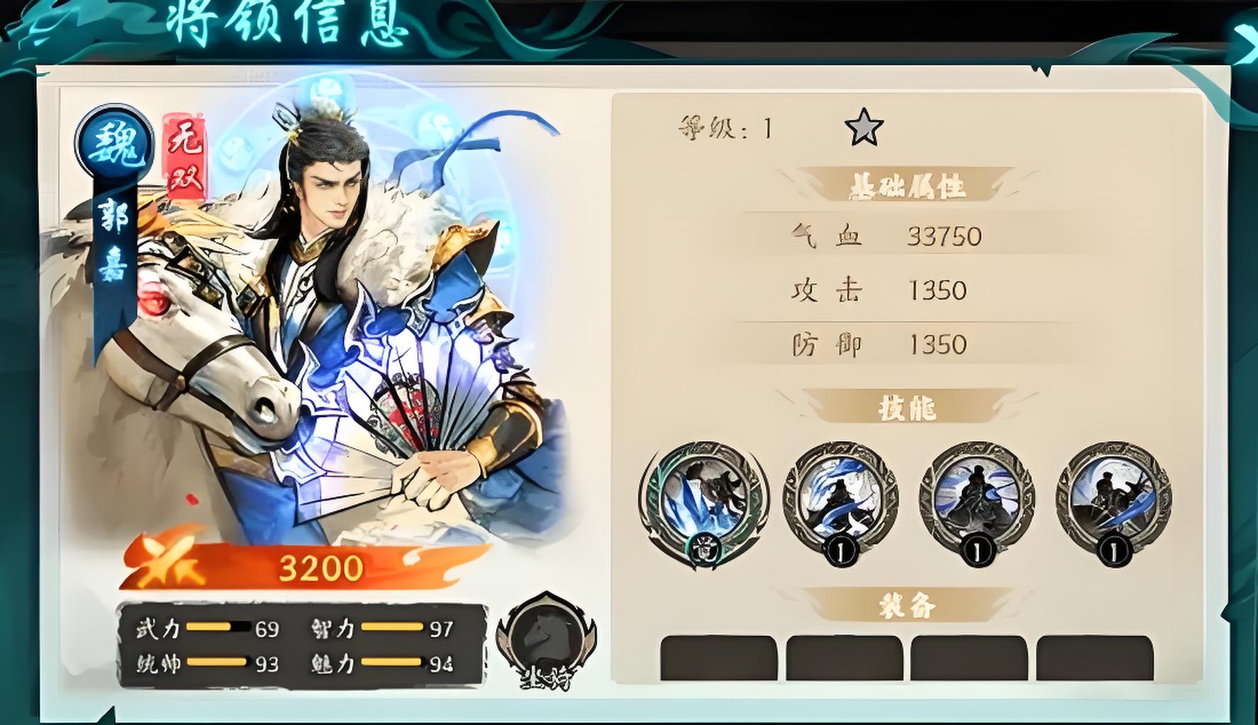 3、郭嘉为核心控制,对寒冰状态敌人造成额外范围伤害,概率再次施加冰冻,实现长时间控场打断对手节奏。