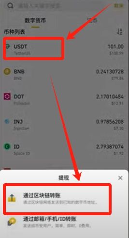 切换至现货账户点击【提钱】,选择USDT后务必勾选通过区块链转账。关键三要素包括:
