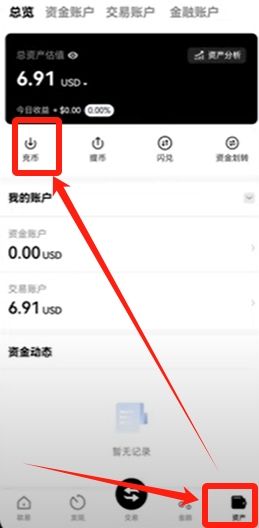 打开币安app后点击右下角【资金】进入总览页面。注意区分现货账户和资金账户:发比购买的USDT默认存放在资金账户,交易前需划转至现货账户。