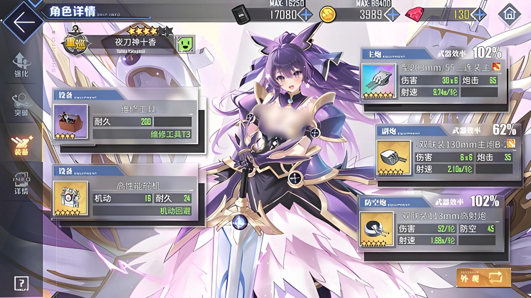 5、主炮推荐彩重巡炮等,副炮选B13或金128,设备搭配金舵机与维修工具兼顾机动与续航。
