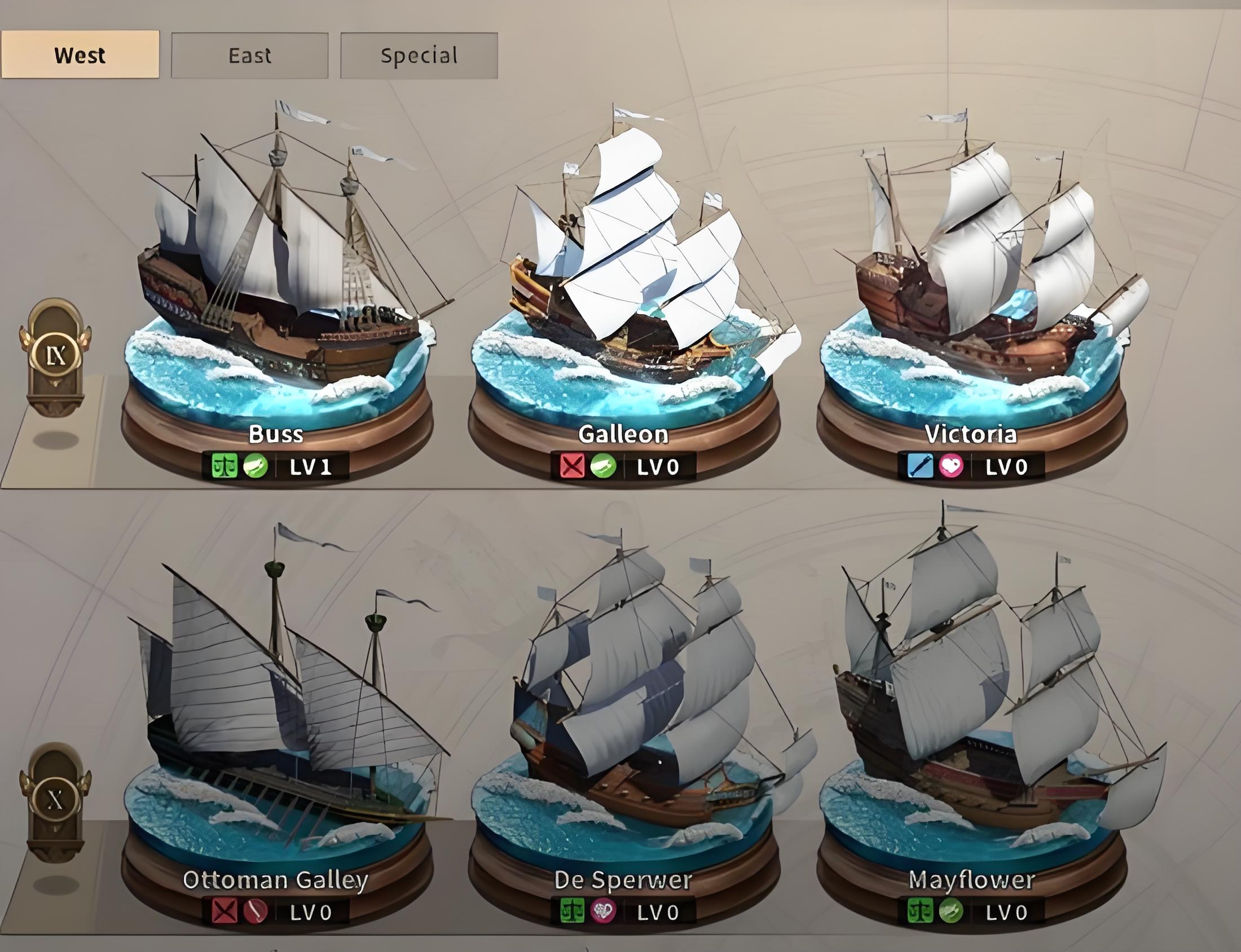 2、明确造船体系避免分散,系统分东方船与西方船,贸易倾向选西方船,海战扩张倾向选东方船,集中资源才能快速突破十级造船门槛。