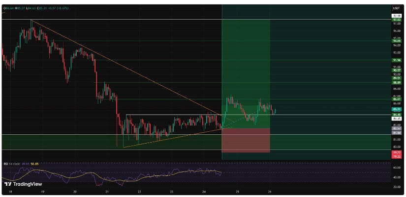 此前莱特币成功突破83.50-84.00美元需求区(该区域被分析师视为短期吸筹区),目前虽呈现稳健复苏态势,但其走势仍与整体市场环境紧密相关——尤其是比特币对山寨币情绪的影响。