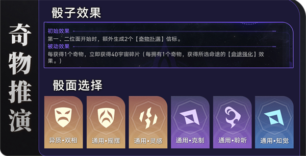 2、骰面选择:【[异质·双相]、[通用·摇摆]、[通用·灵感]、[通用·克制]、[通用·聆听]、[通用·知觉]】。