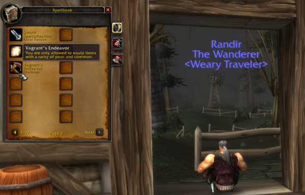 开启流浪者模式,在60级之前,只能使用灰色装备,并且不能附魔。满级后获得流浪者头衔。