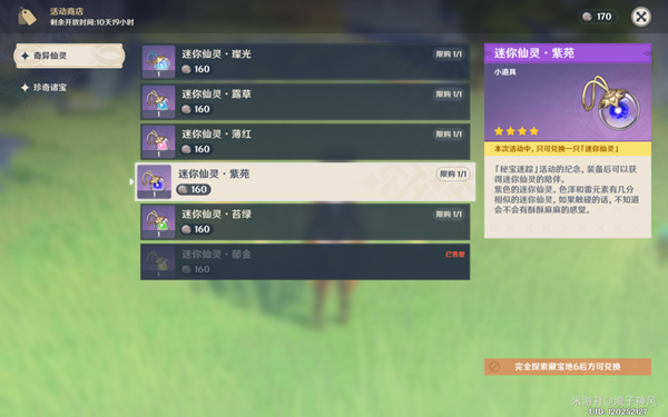 迷你仙灵只能兑换一个,需要完成第六天的任务才可以兑换。参加过上次活动的旅行者不能兑换同样的仙灵。