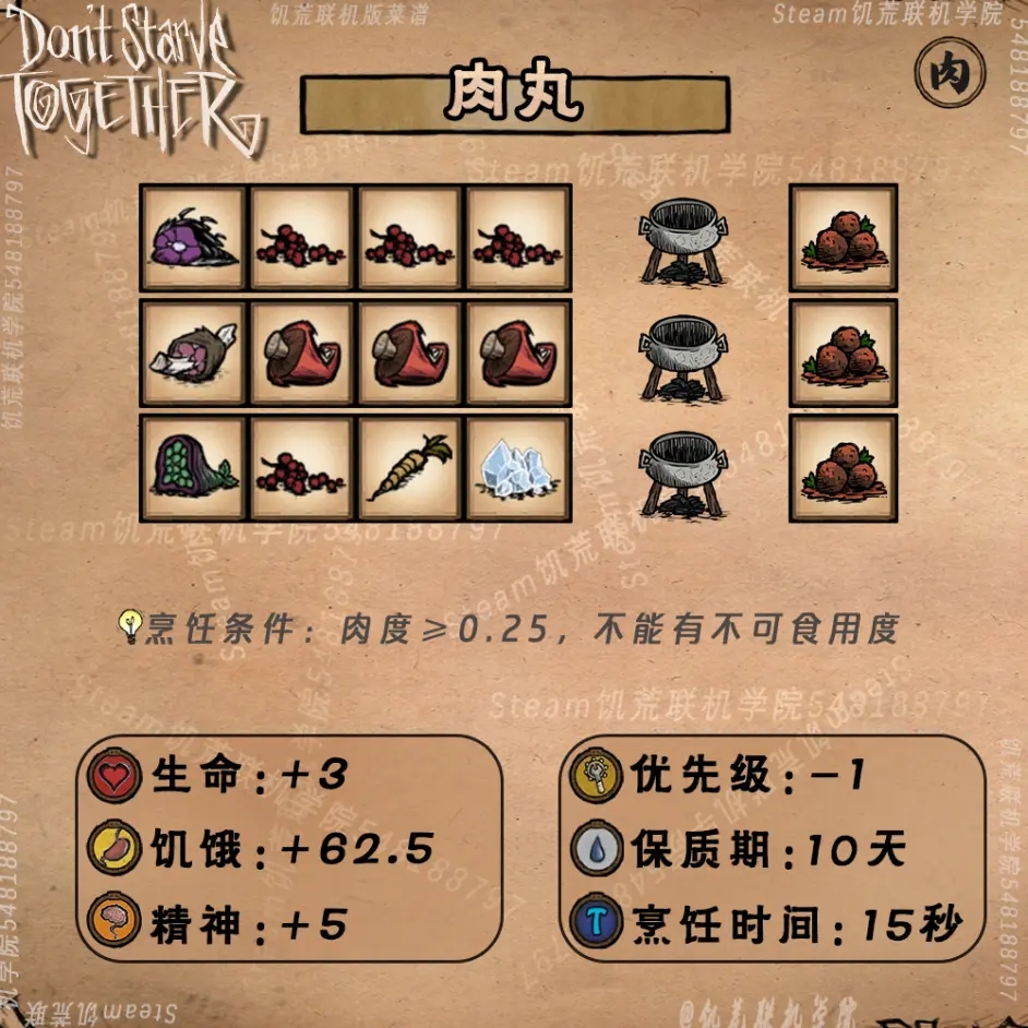 11.蜜汁火腿 12.蜜汁卤肉 13.肉串 14.波兰水饺 15.曼德拉草汤 16.芝士蛋糕 17.南瓜饼干 18.什锦干果 19.怪物千层饼 20.炸鱼排