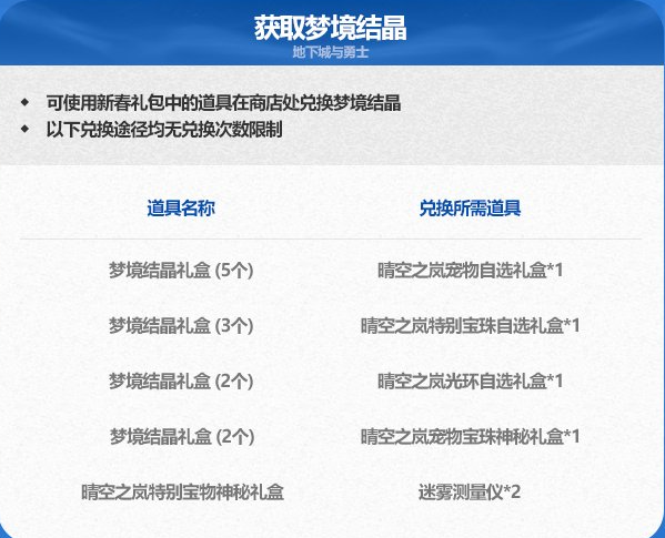 可使用新春礼包中的道具在商店处兑换梦境结晶