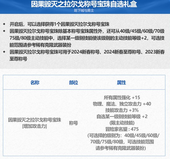 dnf因果毁灭拉尔戈称号宝珠可以在2024新春礼包商店使用35个梦境结晶兑换获得