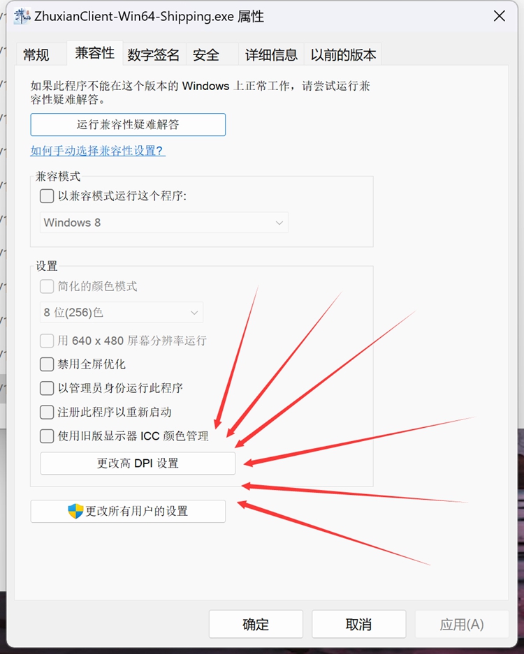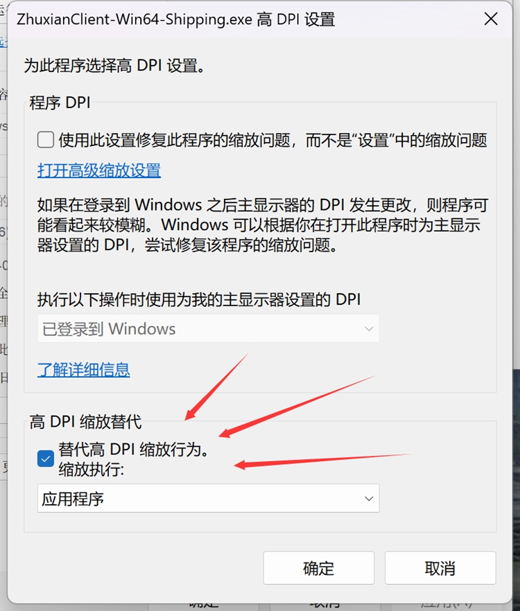 绝大部分人在开2k/4k分辨率的时候都开了分辨率缩放,所以会导致一些游戏没法正确识别游戏分辨率,这时候就要改变DPI缩放行为设置。