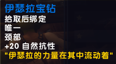 复命后获得伊瑟拉宝钻,一条20自然抗的项链,同时也有了进入翡翠圣殿的入场券。