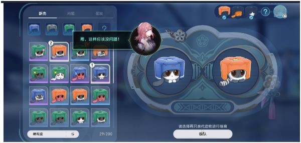 5、选择对应特征的两只,要是:蓝色的酥壳、灰色内陷、白色花纹点击即可培育;