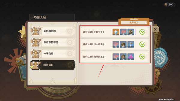 ◆ 评价达到「鬼斧神工」可获得20剧戏票券+30逸趣映片+6个精锻用魔矿。