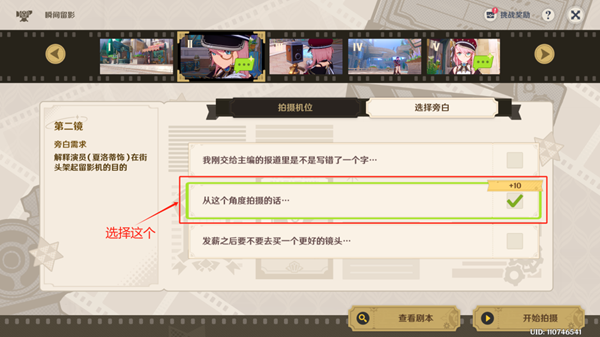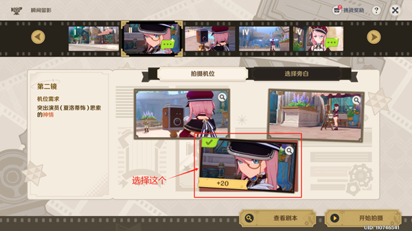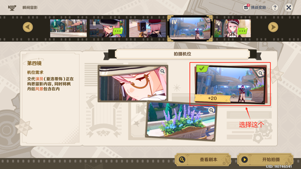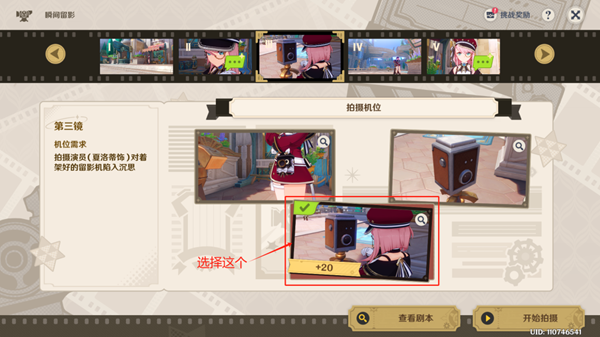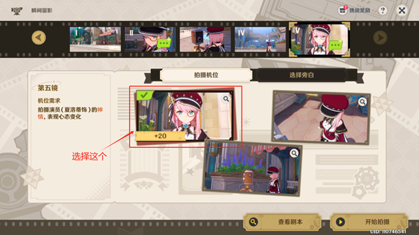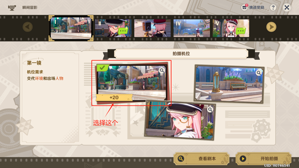 ◇ 第一镜拍摄机位:选择最左边的图片。