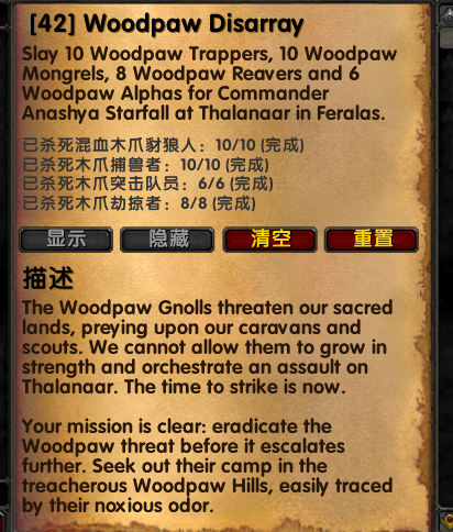 让你去图中标记的位置去击杀豺狼人,怪比较密集,要注意木爪捕兽者会扔网子禁锢,其他的没什么。