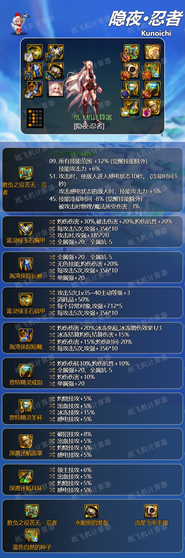 自带增伤,结算快速,神界版本对忍者而言略逊于灼烧流,在灼烧自定义集齐之前仍然强势