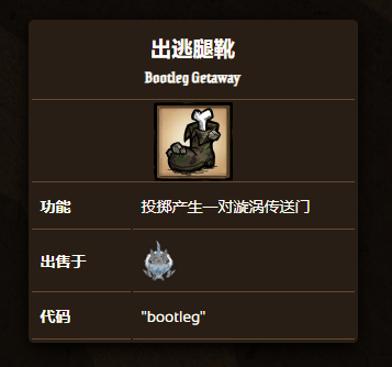 玩家可以通过投掷出逃腿靴来产生一对可以传送船的漩涡。投掷时,玩家需要将出逃腿靴装备在手部装备栏并站在船上,然后在任意位置进行投掷动作就会弹出地图供玩家选择投掷的真正目标点,也可以直接打开地图进行选择,目标点需选取在玩家 16 距离单位之外,并且是海洋地块。