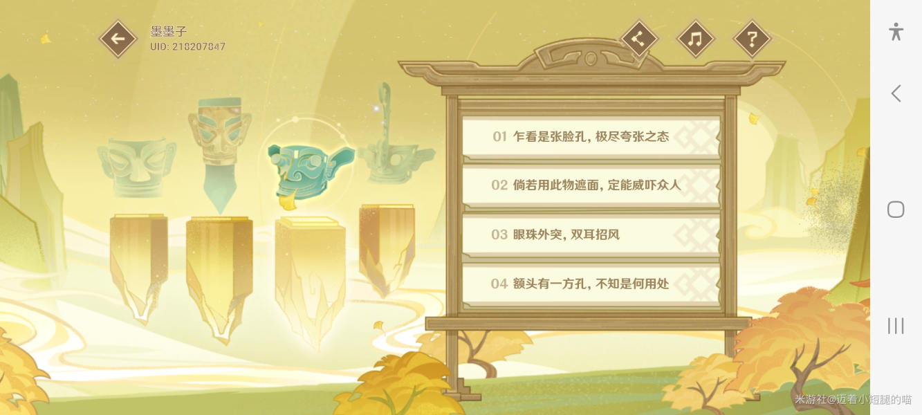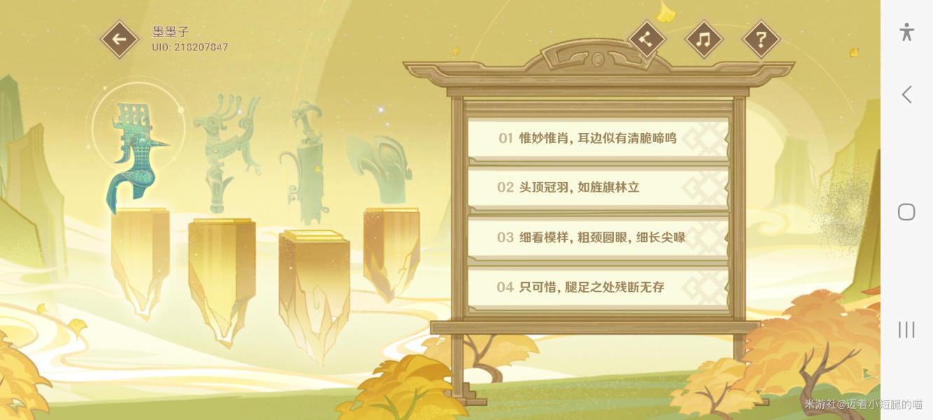 四个文物全部选择完毕以后,即刻解锁四段文物解说语音,还有原石奖励。