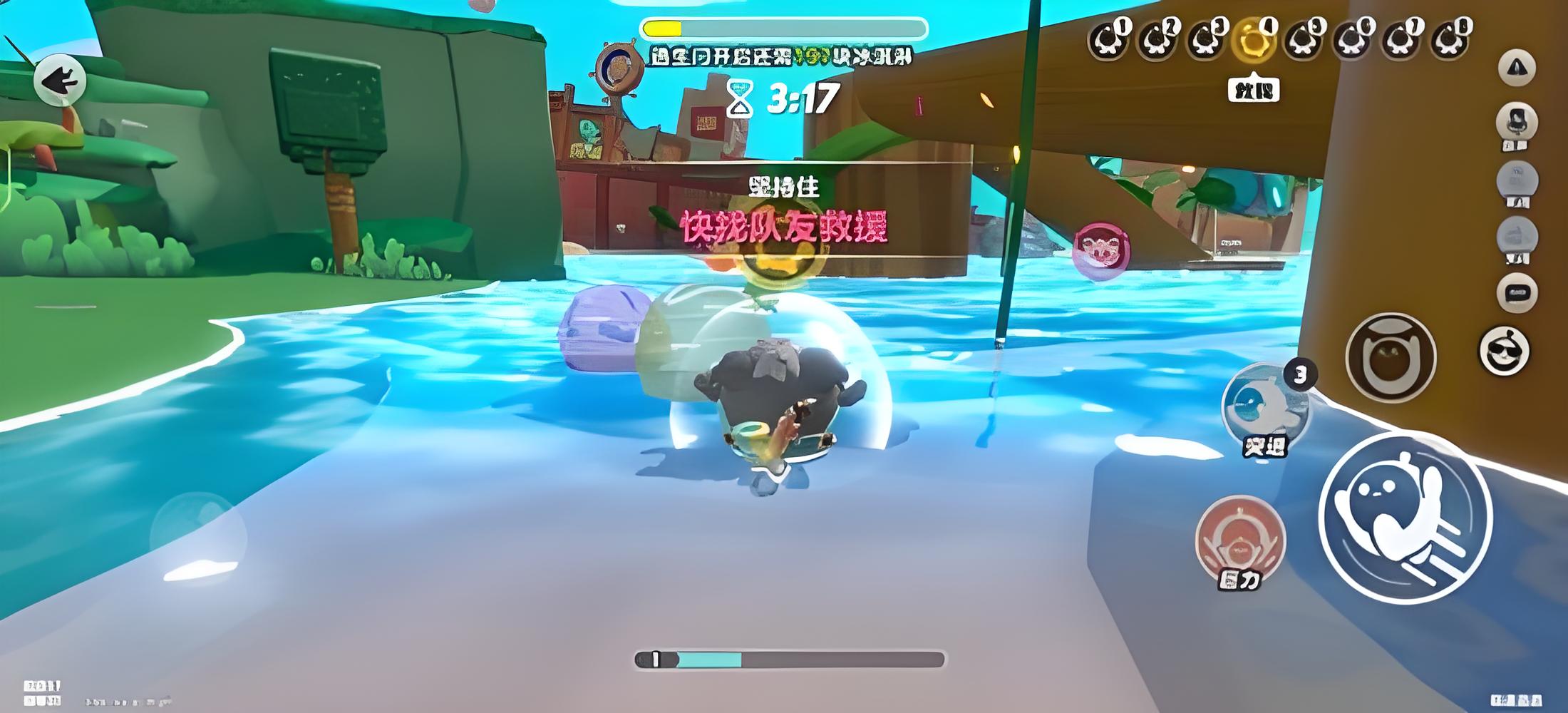 4、老鼠可选救救鸭隐身等技能,雪球道具提升逃生救援效率,斜坡处用突进技能能实现超级飞跃效果。