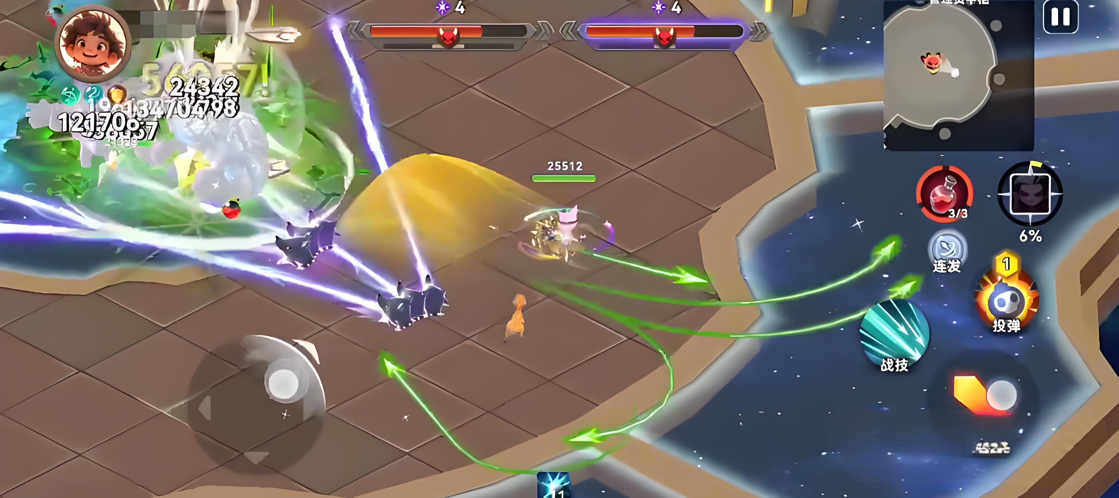 4、实战技巧前期依赖连射清理小怪,后期达成五连胜强化输出,激活暴击率与闪避属性,运用风筝战术应对敌人。